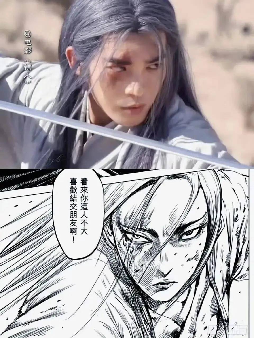 其中,于适主动要求加长道具刀增强动作合理性,灰白刀疤脸造型还原漫画,双短刀打戏兼具力量与美感。